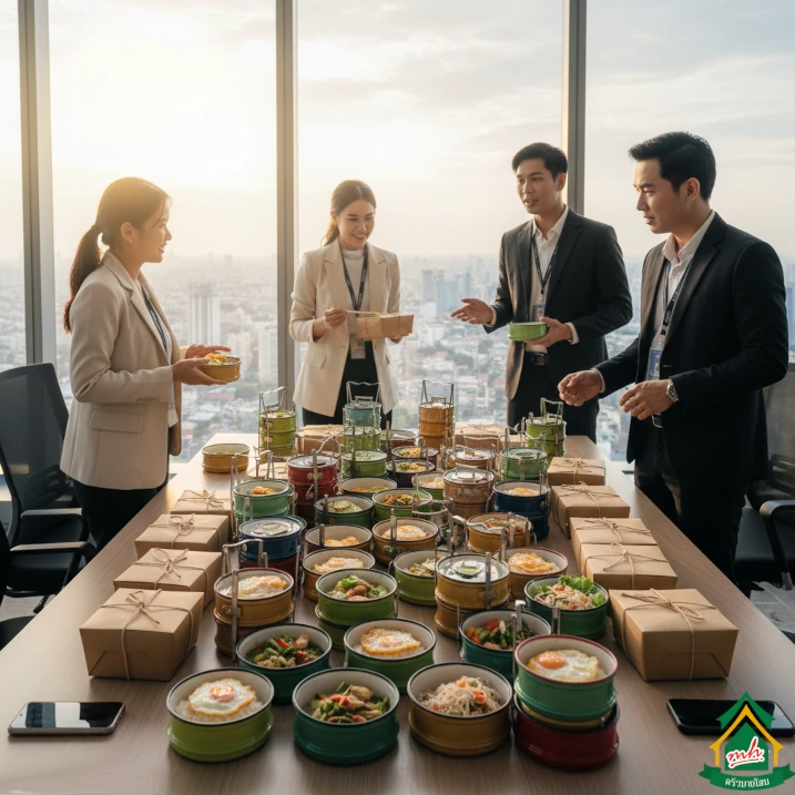 สามารถเลือกได้ทั้งแบบ ข้าวกล่องมาตรฐาน, ข้าวกล่องพรีเมียม หรือจัดชุดตามธีมงาน